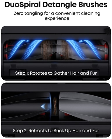 Dens DuoSpiral-børster minimerer hårtotter og reducerer vedligeholdelse, mens CornerRover-armen når ud i hjørner og trange områder, der ofte overses, hvilket sikrer en mere grundig rengøring.