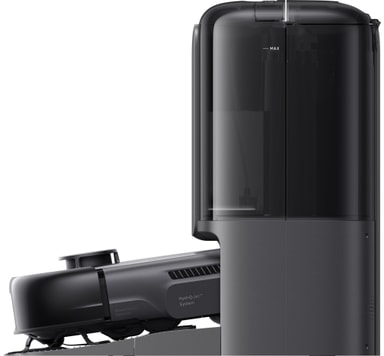 Basestationen overtager det meste af vedligeholdelsen: den tømmer støvbeholderen, vasker og tørrer moppen med varm luft, genopfylder rent vand og doserer endda rengøringsmiddel - hvilket giver en næsten helt automatisk oplevelse.