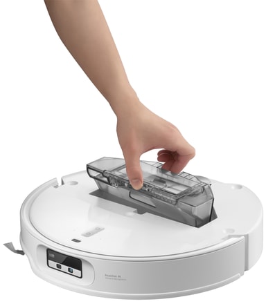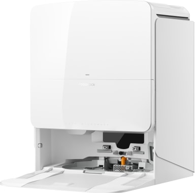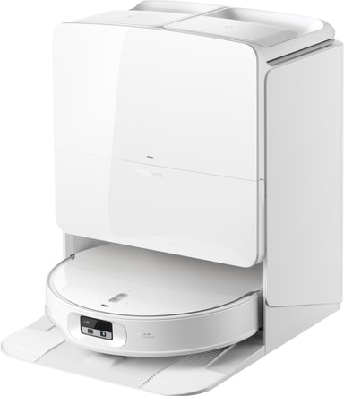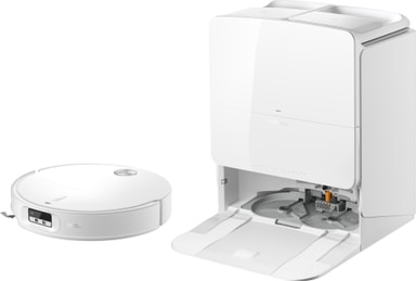 Den multifunktionelle dockingstation automatiserer vedligeholdelsen ved at tømme støvet, vaske moppen med varmt vand og tørre den med varm luft. Dette hjælper med at opretholde hygiejnen og holder robotten klar til næste rengøringsforløb.