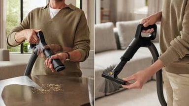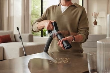 Miele Guard L1 er udstyret med et innovativt 2-i-1-mundstykke - så du hurtigt og nemt kan skifte mellem rengøringsopgaver. Det kombinerer et ekstra bredt møbelmundstykke og et fugemundstykke i et pladsbesparende design - for nem rengøring af møbler og svært tilgængelige områder. Takket være den praktiske opbevaringsplads i den bageste del af støvsugeren er det altid klart til brug.