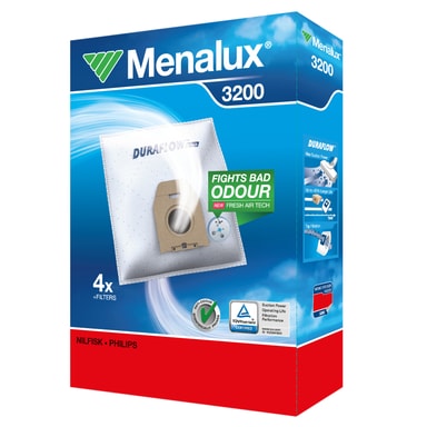 Menalux støvsugerposerne 3200 passer til Philips, Nilfisk, Miostar, Karstadt, Lloyds and Ruton støvsugere. Pakken indeholder 4 syntetiske poser.Læs mere om produktet
