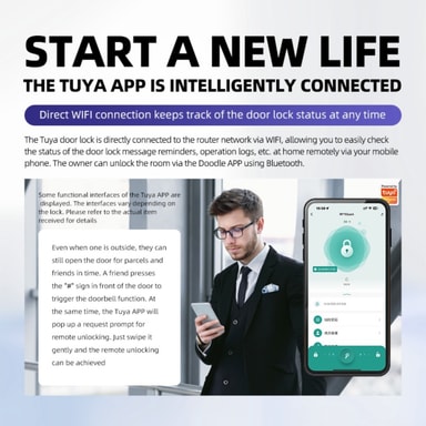 Fjernadgangskontrol: Få fuld kontrol over din boligsikkerhed med Tuya WiFi Smart Dørlås. Denne smarte lås giver dig mulighed for at fjernovervåge og administrere adgangen til din ejendom via Tuya-appen. Uanset om du er på arbejde, rejser eller blot er væk hjemmefra, kan du give midlertidige adgangskoder til gæster, leveringspersonale eller serviceudbydere. Modtag notifikationer i realtid, når døren låses eller låses op, så du altid er opmærksom på, hvem der går ind og ud af dit hjem. Fjernadgangsfunktionen giver uovertruffen bekvemmelighed og ro i sindet, hvilket gør den til en vigtig tilføjelse til ethvert moderne smart home sikkerhedssystem. Denne Tuya smarte lås er kompatibel med forskellige dørtyper og tilbyder en problemfri integration i din eksisterende opsætning.