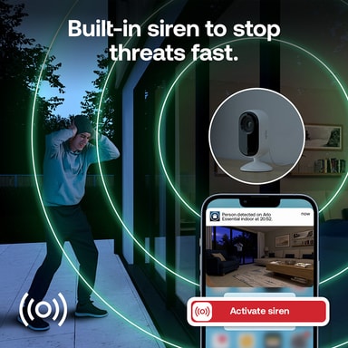 To-vejs lyd Reagér øjeblikkeligt ved hjælp af to-vejs lyd til at kommunikere med familie eller afskrække indtrængere. Du kan også aktivere den indbyggede sirene for øjeblikkelig beskyttelse efter behov.