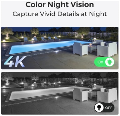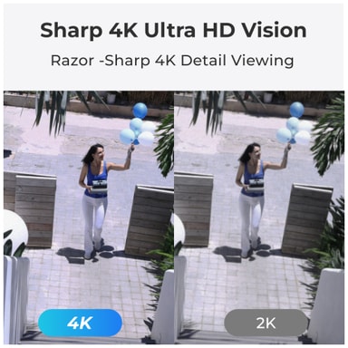 4K videooptagelseskvaliteten sikrer knivskarpt og detaljeret optagelse, mens farve natsynet muliggør detaljerede optagelser i dårlige lysforhold.