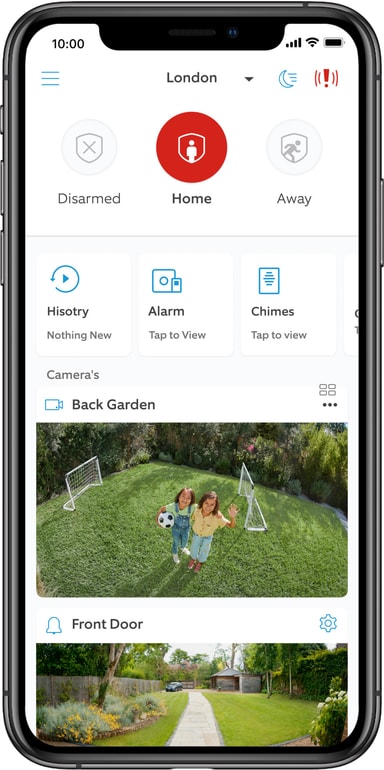 Når du registrerer ubudne gæster, kan du udløse enten de 2 kraftigt lysende bevægelsesaktiverede LED-spotlys eller den højlydte sirene, som kan udløses manuelt fra din Ring-app, og som vil hjælpe med at afskrække eventuelle gerningsmænd.