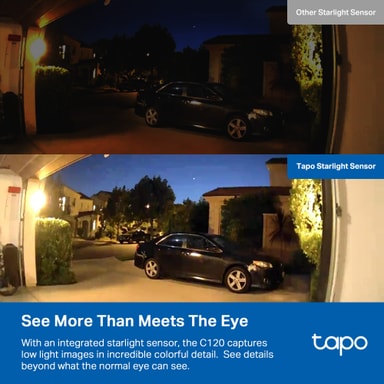 Hold dit hjem sikret med TP-Link Tapo C120 WiFi udendørs sikkerhedskameraet, der giver dig en krystalklar 2K QHD-videooptagelse og Starlight Colour-nattesyn, så du kan fange din have, veranda eller din ejendom i enestående detaljer, selv i scenarier med svagt lys. Kameraet understøtter op til 512 GB microSD-kort og giver dig mulighed for at se, når der er bevægelse uden for dit hjem, og hurtigt give dig besked. Derudover giver tovejs-lydfunktionen dig mulighed for at kommunikere med folk på den anden side fra sikkerheden i dit hjem. Takket være IP66-vand- og støvtætheden kan kameraerne desuden modstå elementerne.