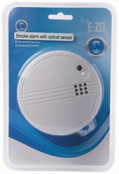 Med en E:ZO røgalarm kan du og din familie føle jer sikre hjemme. Røgalarmen afgiver en høj og gennemtrængende lyd, når den registrerer røg.