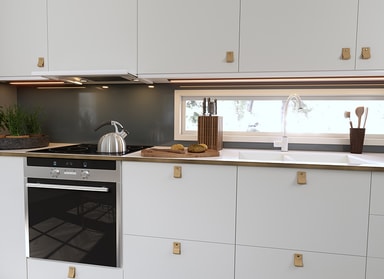 Fremstillet i Sverige med en elegant hvid finish og et praktisk fronthåndtag, der gør det nemt at trække emhætten ud.