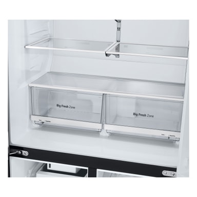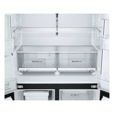 Køleskabet har to smarte skuffer, Big Fresh Zone-skuffen, hvor du kan vælge to forskellige fugtindstillinger til opbevaring af frugt eller grøntsager.