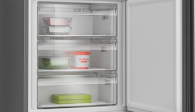 Dette kølefryseskab fra Bosch er fremstillet af nøje udvalgte materialer, herunder CO₂-reduceret stål, aluminium, biobaseret skum og plast, med egenskaber verificeret gennem internationalt anerkendte standarder.*