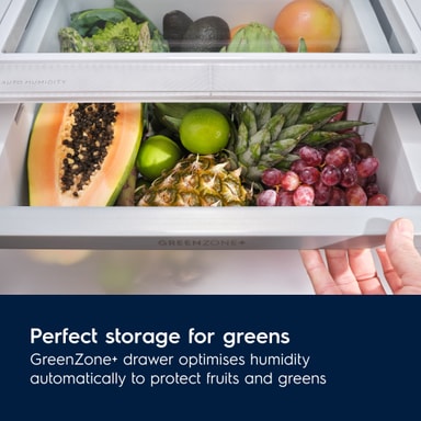GreenZone+ er den ideelle grøntsagsskuffe. Den fjerner overskydende fugt og opretholder samtidigt den rette mængde til dine grøntsager. Holder frugt og grøntsager sunde.