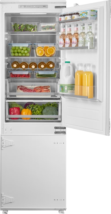 Epoq køleskab/fryser EBF177I24D integreret giver dig en moderne løsning til opbevaring af dine yndlingsprodukter, uanset om de er friske eller frosne. Med NoFrost og MultiFlow teknologi holder denne kombi alle dine ingredienser friske og klar til brug.