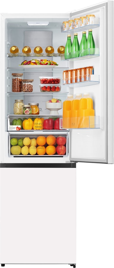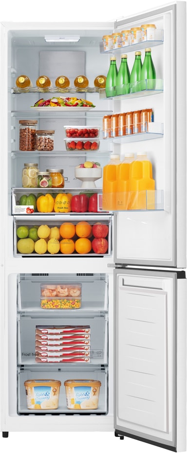 Køleskabet har en kapacitet på 238 liter, hvilket giver masser af plads til alle typer fødevarer. Indvendigt er det opdelt i 2 glashylder, 2 grøntsagsskuffer og en flaskehylde, så hver vare finder sin plads. Den øverste skuffe med justerbar temperatur er perfekt til opbevaring af kød, frugt eller grøntsager. Den nederste skuffe med fugtighedskontrol skaber et optimalt miljø for forskellige slags frugt og grønt.