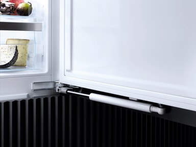 Køle- og fryseskabsdøre, der lukker stille og af sig selv: med SoftClose, det innovative lukkesystem fra Miele. Døren lukkes automatisk, når den står i en vinkel på over 30°. Hertil dæmper SoftClose døren ved lukning - aldrig mere klirrende flasker i døren.