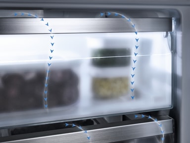 Med NoFrost-systemet behøver du aldrig mere at afrime dit køle-/fryseskab fra Miele. Den kolde, tørre luft recirkuleres, så der ikke kan dannes is. Derudover dannes der ikke is på dine frysevarer, og skufferne kan let åbnes og lukkes uden forstyrrende islag. NoFrost byder dermed på stor komfort ved nedfrysning og sparer dig for den besværlige afrimning - for altid.