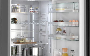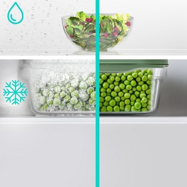 noFrost køle-/fryseskab, automatisk afrimning. Med hyperFresh-skuffe, der holder frugt og grønt frisk i længere tid takket være optimal temperatur og mulighed for regulering af luftfugtighed.Læs mere om produktet