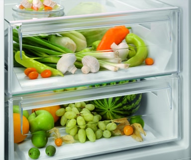Vores køleskab med OptiSpace giver masser af opbevaringsmuligheder, både ovenpå og mellem hylderne. Og hvis du har brug for endnu mere plads, kan skufferne let fjernes for at opfylde dine specifikke behov.