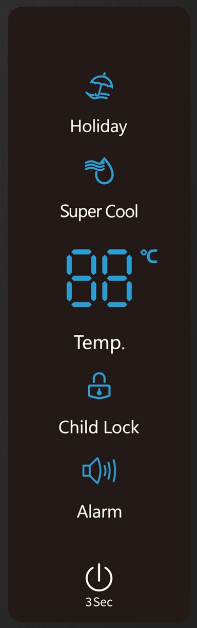 Køleskabet er udstyret med et display til temperaturstyring, hvilket giver dig mulighed for nemt at indstille og overvåge den indvendige temperatur.