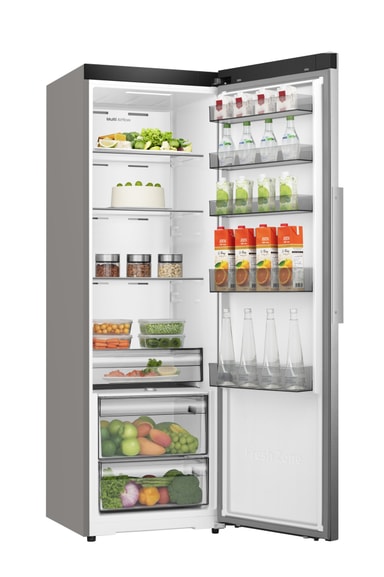 Med en generøs kapacitet på 372L tilbyder denne køler rigelig plads til alle dine dagligvarer. Multi Tray-systemet giver fleksible opbevaringsmuligheder, så det er nemt at organisere dine fødevarer. Fresh Zone er et dedikeret rum til at holde dine frugter og grøntsager friske i længere tid, og de to grøntsagsskuffer inkluderer én med Humidity Control til at opretholde det ideelle fugtighedsniveau for dine råvarer.