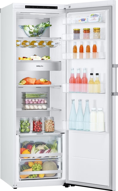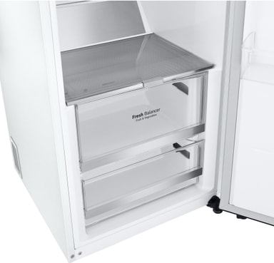 Opbevar alle dine mad- og drikkevarer i dette LG køleskab GLT71SWCSX med en stor kapacitet på 386 liter, Door Cooling system, MultiFlow-teknologi, touchskærm og et minimalistisk design.