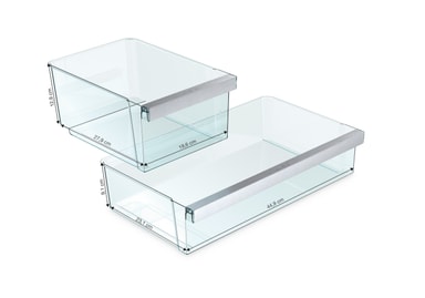 Miele ComfortClean-dørhylder er fremstillet af plast af høj kvalitet og er særligt ridsefaste, kemikalieresistente, temperaturstabile og transparente. ComfortClean-dørhylder tåler hygiejnisk rengøring i opvaskemaskinen (op til 55 °C). Dermed er manuel aftørring af dørhylderne ikke længere nødvendigt.