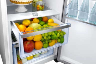 Nyd fordelene ved Samsungs innovative Space Max-teknologi. Takket være minimal tykkelse på apparatets vægge kan du nu opbevare endnu mere mad, mens du sparer plads, da målene forbliver standard.