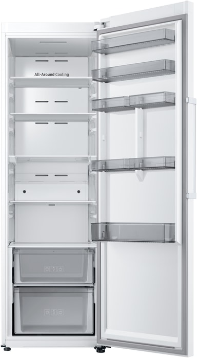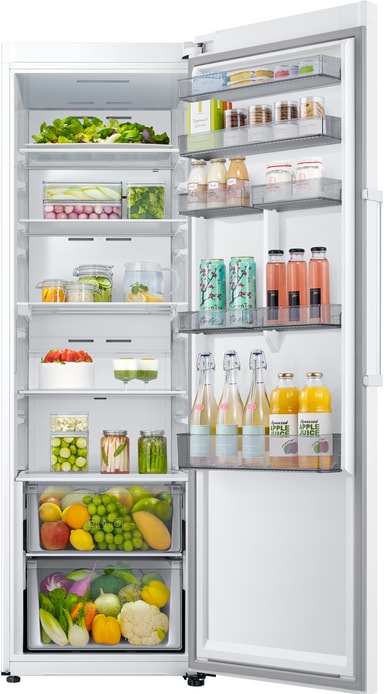 Nyd praktisk opbevaring af store mængder mad med Samsung køleskabet RR39C7BG6WW/EF. Det har en generøs nettovolumen på 387 liter, Frost-fri- og SpaceMax-teknologi, All Around-køling, SmartThings AI energitilstand og mere.Læs mere om produktet