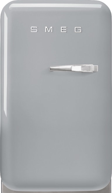 Smeg Køleskab FAB5LSV6 i elegant Sølv tilbyder kompakt elegance med støjsvag drift på 36 dB, 72,5 cm højde, justerbare fødder og to hylder, perfekt til stilfuld køling med pladsbesparende design.Læs mere om produktet