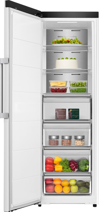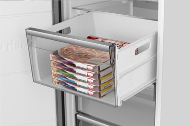 Med en dybde på 60 cm passer KitchenFit-køleskabet perfekt ind i dine køkkenskabe. Du får et moderne, integreret look – uden at skulle vælge et fuldt integreret produkt. Passer i små og smalle nicher. Takket være et smart hængsel design kan dørene åbnes helt, selvom køleskabet står tæt på skabe eller vægge. Der skal kun være 2,5 mm fri plads i siderne og 5 mm i toppen. Fuld funktionalitet uden kompromiser. Alle skuffer og hylder kan trækkes helt ud, så du får mest muligt ud af pladsen – perfekt til både nye og eksisterende køkkener.