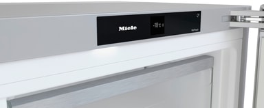Køle- og fryseskabsdør, der lukker lydløst og automatisk med SoftClose, det Mieles innovative lukkesystem. Døren lukker automatisk fra en vinkel på over 30 grader. Hertil dæmper SoftClose døren ved lukning - aldrig mere klirrende flasker i døren.