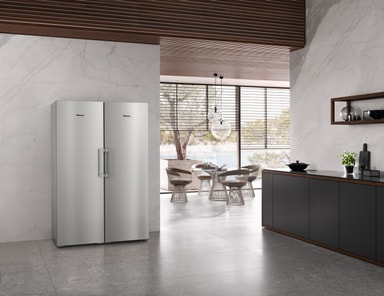 Med NoFrost-systemet behøver du aldrig mere at afrime dit køle-/fryseskab fra Miele. Den kolde, tørre luft recirkuleres, så der ikke kan dannes is. Derudover dannes der ikke is på dine frysevarer, og skufferne kan let åbnes og lukkes uden forstyrrende islag. NoFrost giver dig maksimal komfort ved indfrysning og sparer dig for besværet med afrimning - for altid.