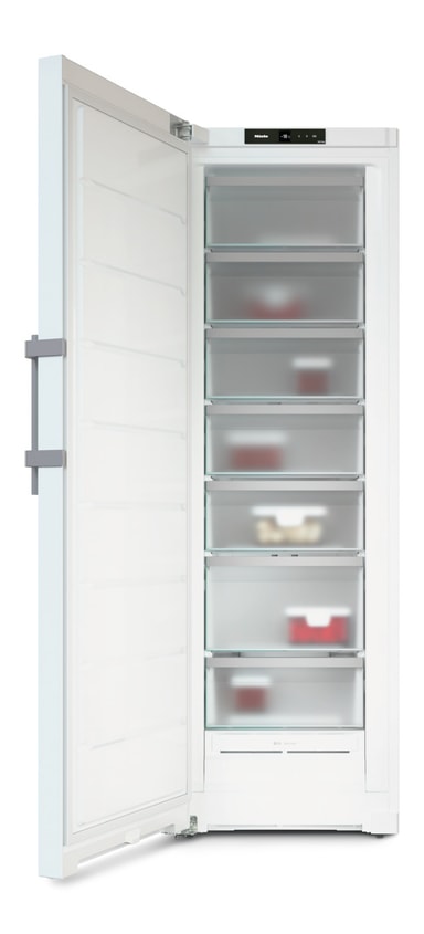 Miele Fritstående Fryser FNS4383D byder på 278 liters kapacitet i et elegant hvidt design med NoFrost-teknologi, EasyHandle, Wi-Fi-forbindelse og justerbare fødder for problemfri fritstående placering.Læs mere om produktetSpecifikationer