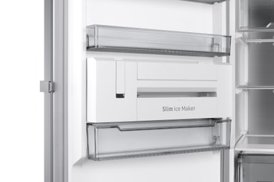 Slim Ice Maker: Nyd en uendelig forsyning af isterninger, der kun er et simpelt drej væk, takket være den slanke ismaskine. For mere bekvemmelighed er den integreret i døren og opbevarer 5 gange flere isterninger, end den producerer.