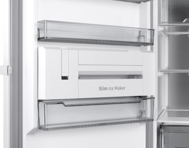 Slim Ice Maker: Nyd en uendelig forsyning af isterninger, der kun er et simpelt drej væk, takket være den slanke ismaskine. For mere bekvemmelighed er den integreret i døren og opbevarer 5 gange flere isterninger, end den producerer.