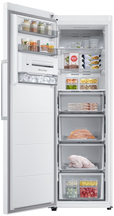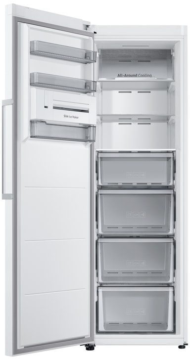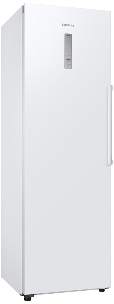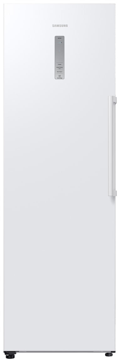 Samsung-fryserens fritstående, opretstående design passer nemt ind i dit køkken. Dens slanke, én-dørs konfiguration inkluderer en ekstern skærm og håndtag for ekstra bekvemmelighed.