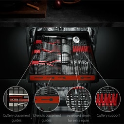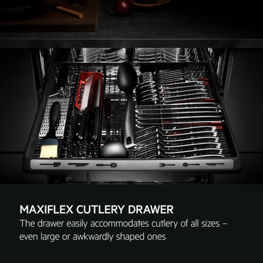 MaxiFlex skuffen er konstrueret til at rumme bestik og køkkenredskaber, uanset størrelse og form. Fleksible skillevægge og maksimeret dybde betyder, at du kan placere tingene, som du vil. Hver genstand lægges i og vaskes på én gang uden problemer.