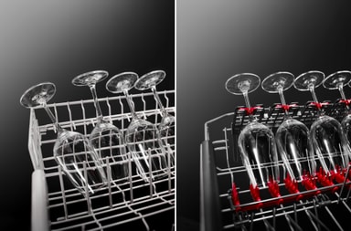 Dine sarte glas kan ikke vaskes på en mere sikker måde, takket være AEG SoftGrip og SoftSpikes, der holder dine glas helt perfekt og beskytter dem mod at blive beskadiget under opvasken.