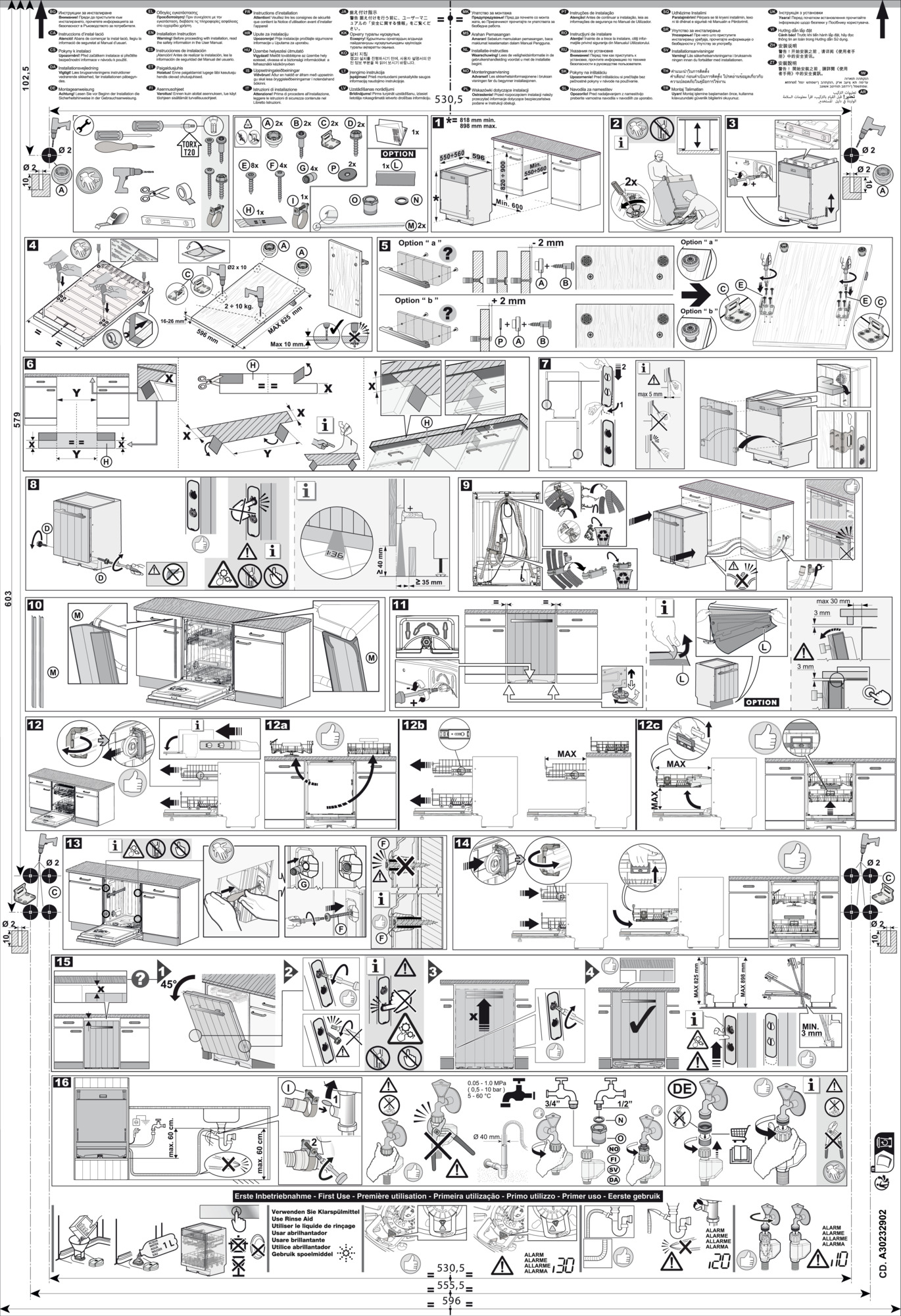 Denne opvaskemaskine er mærket med FlexiFit. Det betyder, at opvaskemaskinen passer til køkkenfronter der er 70-80 cm. høje, samt langt størstedelen af alle beslag. Husk at sammenholde din køkkenlåges mål med maskinen du køber.