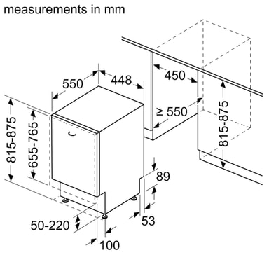 Denne opvaskemaskine er mærket med FlexiFit. Det betyder, at opvaskemaskinen passer til køkkenfronter der er 70-80 cm. høje, samt langt størstedelen af alle beslag. Husk at sammenholde din køkkenlåges mål med maskinen du køber.
