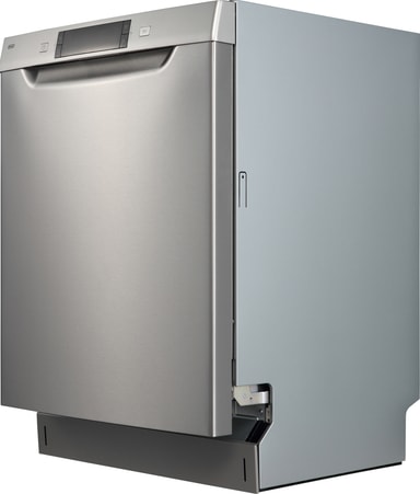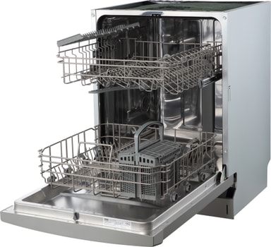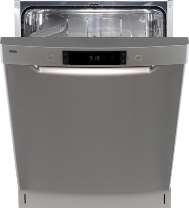 Delonghi underbyggede opvaskemaskine har en elegant rustfri stål finish og et indbygget design, der passer pænt ind under din bordplade. LED-displayet viser den resterende programtid, så det er nemt at følge med.