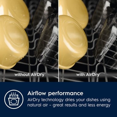 AirDry-teknologi: Opvaskemaskinen bruger naturlig luftstrøm, når du tørrer opvasken.