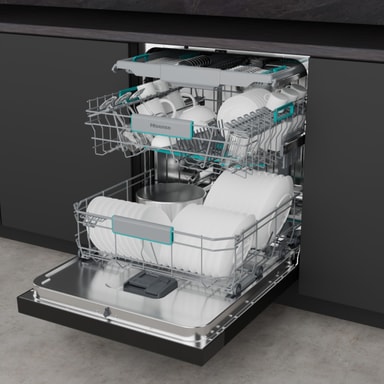 Tre spuleniveauer sørger for grundig rengøring. Glasprogrammet vasker skånsomt, og døren åbner automatisk efter endt program, så opvasken tørrer hurtigere.