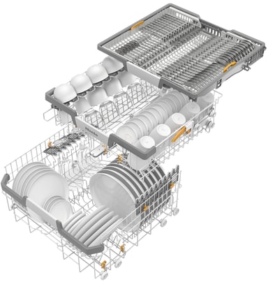 Mieles opvaskemaskiner tilbyder plads til op til 14 kuverter. Med vores kurve sørger vi for at opfylde dine ønsker og behov, såvel som standarden, så alt service ikke kun finder den optimale plads, men også er rent og tørt.