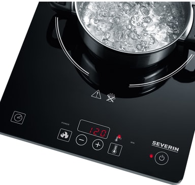 Severin kogepladen KP 1071 er praktisk til små rum. Den har en 22 cm induktionskogezone, en automatisk grydesensor, et touch-kontrolpanel, en belyst skærm, 10 styrker og en overflade, som er nem at rengøre.Læs mere om produktet