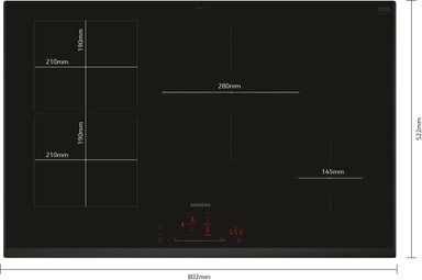 Siemens kogeplade ED851HSB1E: 80 cm, 4-zoner kogeplade med CombiZone, multitouch-kontrol og Home Connect for smart, effektiv madlavning.Læs mere om produktet