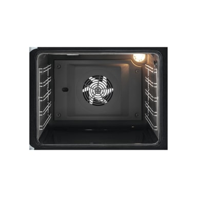 - Varmluftsystemet tilbereder maden jævnt i hele ovnen.