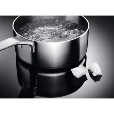 Induktionskogepladen varmer hurtigere op end andre kogeplader. Den koger vand hurtigere, og varmejusteringen er så fin, at det er nemt at tilberede selv de mest raffinerede og præcisionskrævende madretter.