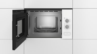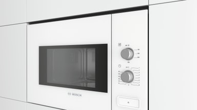 Tilbered, optø eller opvarm maden nemt takket være Bosch Series 4 mikrobølgeovnen BFL520MW0, der har en 25,5 cm plade, 5 varmeniveauer samt indvendig belysning.