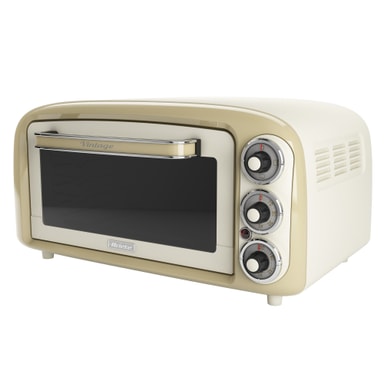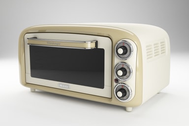 Design: Som fra en amerikansk diner i 60’erne direkte til dit køkken. Miniovnens legesyge vintage design vil lyse op i dit køkken og gøre det endnu sjovere at lave pizza.