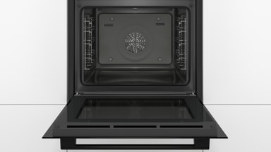 Bosch ovnen HBA530BB0S minimerer behovet for rengøring, for belængingen på bagvæggen absorberer snavs.